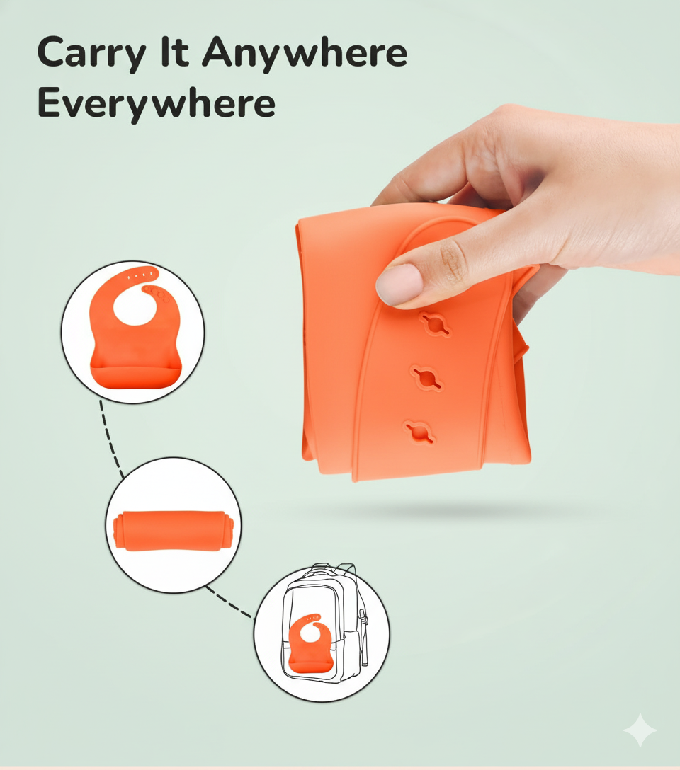 With adjustable straps that grow with your child, it ensures a secure and comfortable fit every time. Just rinse or wipe to clean — no more soaking or scrubbing! A perfect feeding companion for smart moms and happy little eaters.