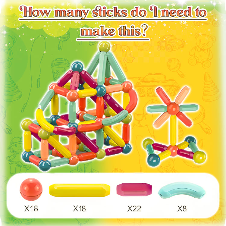 Designed with strong magnets and lightweight, child-safe materials, kids can easily connect sticks and balls to build towers, houses, geometric shapes, and imaginative 3D models.